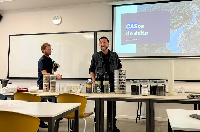 Al final del mismo se realizó una parte práctica con dos mesas de laboratorio para ver dosificaciones de tratamientos bituminosos, ensayos de penetración de emulsiones de imprimación, dosificación de microaglomerados en frío así como de mezclas en frío acopiables.